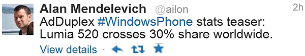 Lumia 520 占据全球 30% 的 Windows Phone 市场