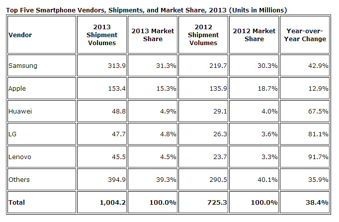 10 亿台!2013 年,智能手机出货量创下新记录。