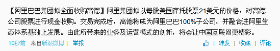 阿里巴巴在不久前发布微博,称阿里计划以每股美国存托股票 21 美元的价格,对高德进行现金收购。交易完成后,高德将成为阿里的全资子公司。