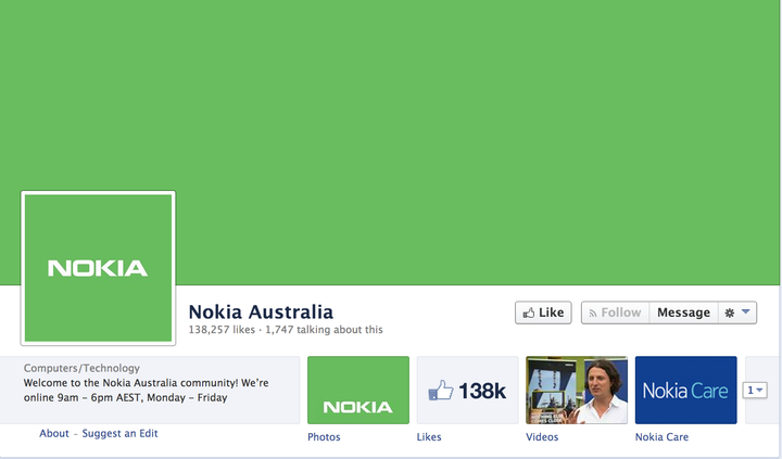 而在之前,已经有媒体发现诺基亚早在情人节前夜就一反传统的蓝色,将各销售地区的 Facebook 和 Twitter 主页色调改成了绿色,可见官方早已开始为此造势。