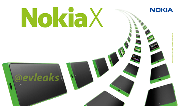 在这张宣传图中,传说中的Nokia X 分三列整齐地飞来,大有机海的意味。此图不仅印证了 Nokia X 的代号,其特意渲染的标志性绿色也表明,这就是那款搭载 Android 小机器人的手机。