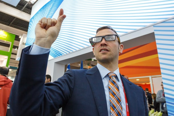 对于智能眼镜而言,桎梏之一莫过于它的不可直接操作性——没有键盘,也没有触摸屏。Google Glass 的语音控制及触控镜架仿佛也不是最好的解决方法。以色列智能眼镜制造商 Lumus 提供了另一种思路。这家公司在今年 CES 大会上发布了智能眼镜 Lumus,在 MWC 上,它又宣布与 eyeSight 公司合作,为 Lumus 眼镜增加了手势识别功能。