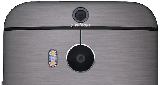 双摄像头应该是 HTC One 2 最引人注意的硬件升级了。evleaks 曝光了一张 HTC One 2 的背部近照,双摄像头和双闪光灯设计一览无遗。