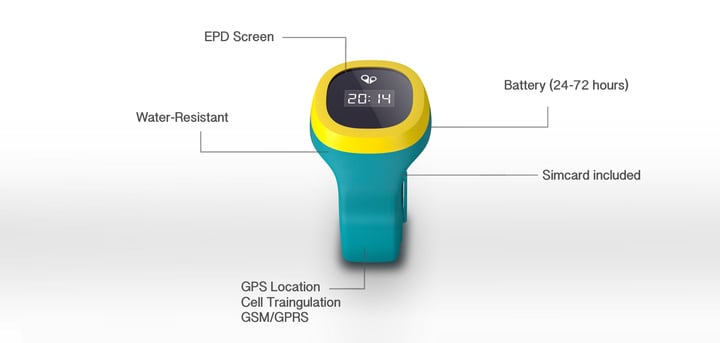 HereO 实际上是一个小巧的智能手机,内置 SIM 卡,可以连接父母的手机。家长通过 app 接收手表发出的实时定位信息。他们也可以设置一个“安全区域”,一旦孩子离开了这个区域,手机会收到警报。