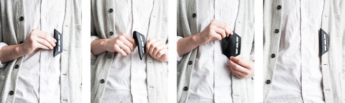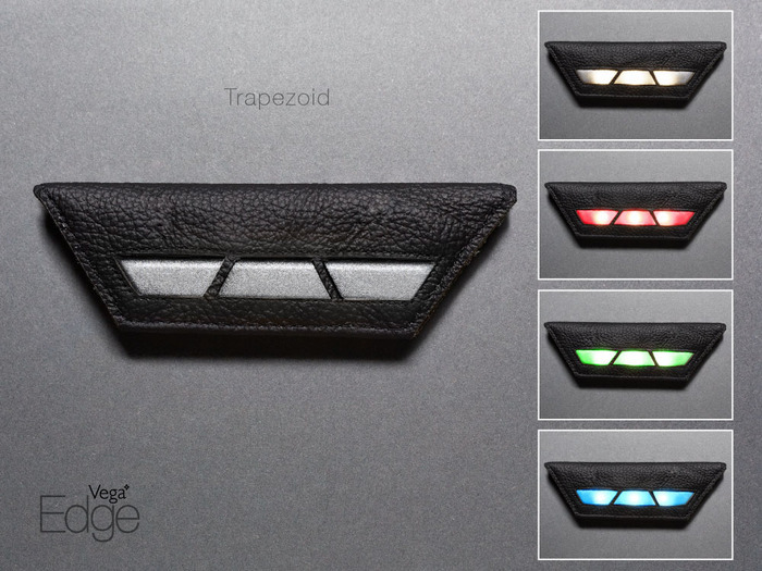 Vega Edge 用激光切割的皮革制作,边缘有四个磁铁,可以强力扣在衣物上。正面有一个LED 灯,可以发出淡淡的光,并且按照不同模式闪烁。内置一个纽扣电池,USB 充电,可发光 20 小时。你可以把这个新奇的装饰品安装在任何你想发光的地方。外套、衣领、口袋、领带、腰带……作为一个装饰品,Vega Edge 仍然有一些实用的功能。在夜间它可以充当提醒灯,在你跑步、骑车时给你增加一份安全系数。