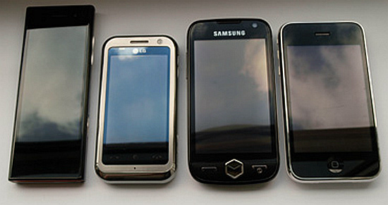 左起:LG BL40、LG Arena、三星 Omnia II、iPhone 3GS