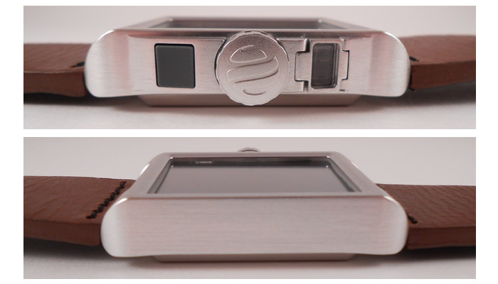 手表一侧分布了一个用来提醒电量的 LED 灯、一个控制旋钮和启动按钮。目前 Carbon 可供智能手机、Google Glass 等设备充电。当然也能给智能手表充电,如果你不介意带着两只用 USB 连接的手表的话。