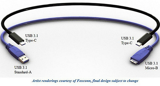 USB 3.1 Type-C 就是一款让人期待的全新设计。它的头、尾接口完全一致,接口的正反面也全部相同。现在,你完全不用担心会插反接口。