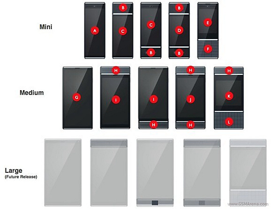 Project Ara 指南甚至还提到了全触屏和键盘两种布局,它们在大、中、小三种手机布局中都有分布。