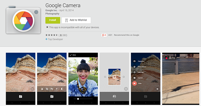 Google 在今天上线了一款名为 Google Camera 的独立拍照应用。目前 Google Camera 只支持 Android 4.4 系统,不过 Google 表示未来会让更多的设备享受到它。