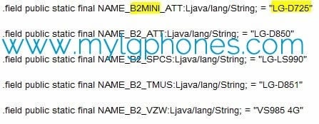 G3 的内部代号为 B2,那么 B2 mini 毫无疑问就是 G3 mini 了。My LG Phones 截获的文件显示:G3 mini 的型号为 LG-D725,将采用 720p 显示屏。