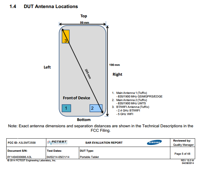 根据 FCC 的文件,SM-T2558 的机身宽 99 毫米,长 190 毫米。配置上,它内置 1.2GHz 四核处理器(可能是高通骁龙 400)、1.5GB RAM、8GB 存储空间、支持 TD-LTE/TD-SCDMA网络、800 万像素主镜头、预装 Android 4.3。文件中没有提到售价和上市日期。