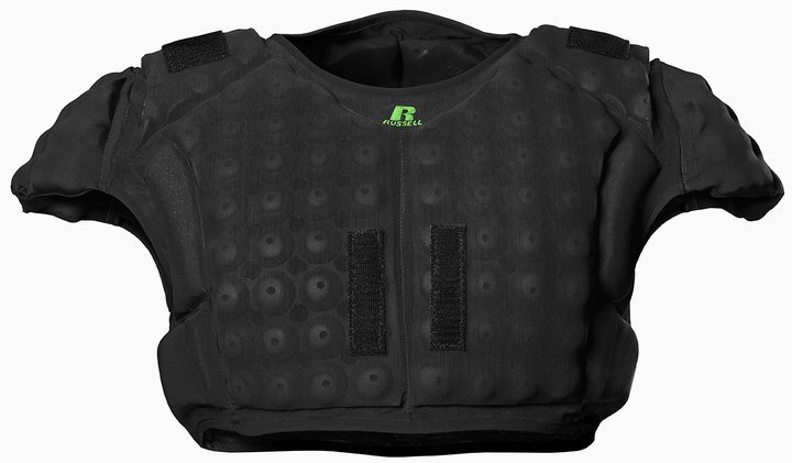 Russell Athletic 碳纤维护肩是该公司生产的首款同类型产品,与之配套的机械服(Exoskeleton)也是碳纤维制造。除此之外,还有一款兼具透气性和保护功能的背心也是这套“保护系统”的重要组成部分。背心上布满了高尔夫球一样大小的橡胶泡沫,可以用来分散撞击中受到的冲击力。