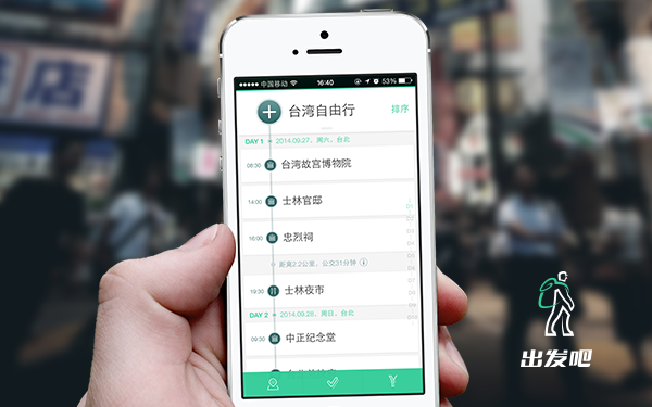 一场说走就走的旅行,听上去总是很美好:曼哈顿红色的落日,巴哈马粉色的沙滩,清迈金色的庙……可事实往往是:下了飞机,拿到行李,马上陷入六神无主之中;或是手拿 A4 纸的行程单,四下张望,并没有预想中的那座车站!旅行其实是一件让人操心的事情,而「出发吧」正努力让它变得轻松。