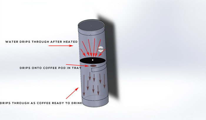 Hey Joe 咖啡杯重 408g,杯内分上下两层,底部的 USB 接口可为其充电。将水倒入杯中,加热系统会先将水加热至预设的温度(按一次按键是60° C,按两次是68° C,按三次可以做冰滴咖啡)。当水温达到预设温度,就会通过小孔滴向固定在咖啡杯正中间的咖啡包上。之后,滤好的咖啡会保存在咖啡杯下层,而底部的电热板会继续保持咖啡的温度。热咖啡一般需要 3 分钟,冰咖啡只需 1 分半钟就能完成。