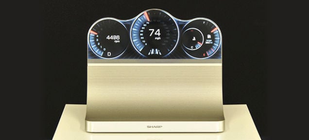 夏普展示的一款汽车表盘,就是采用了圆形的设计。夏普表示,不仅仅是汽车,这项技术还能运用到可穿戴设备领域。自由形态显示屏还能激发更多的想象:无边框的平板电脑、奇异形状的智能手机……