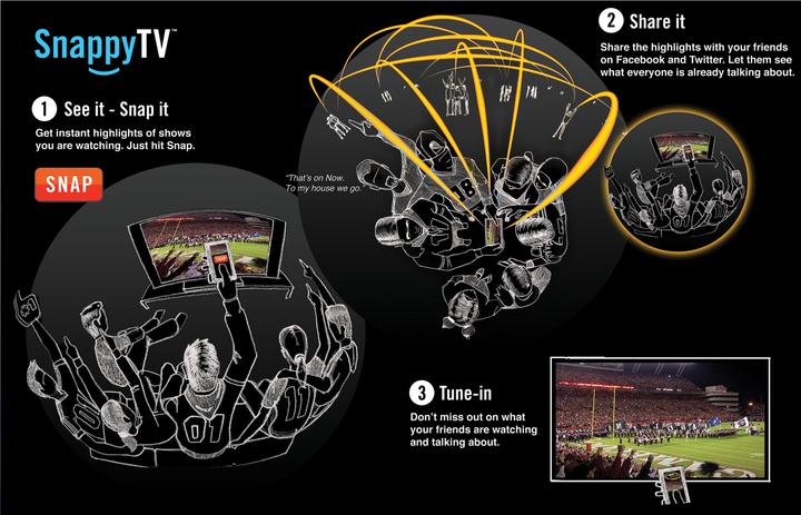 成立于 2010 年的 SnappyTV 主要提供视频的实时编辑和分发服务。SnappyTV 的视频加工服务允许用户在观看电视的时候,通过 SnappyTV 提供的工具实时抓取电视上的精彩片段,然后将它们分享到社交网络。这些精彩片段可以包括世界杯上的关键进球、美国总统大选,或者是未来莱昂纳多获得奥斯卡小金人时的动人瞬间……总之,SnappyTV 不用为内容发愁。