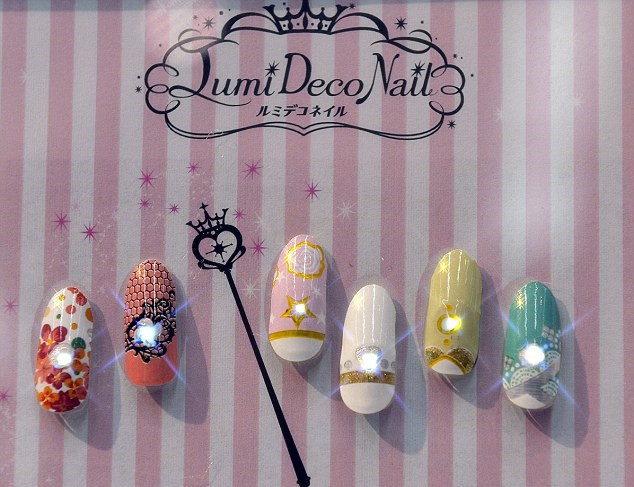 日本玩具公司 Takara Tomy A.R.T.S.推出的这款会发光的智能美甲片 LumiDecoNail 是利用了近距无线通讯(Near Field Communication,NFC)技术。每枚指甲内镶嵌超微的智能 LED 光源,当你使用手机打电话或电子货币卡(electronic money card)时,指甲能近距离感应信号,发出光芒。而目前只适用于安卓系统。