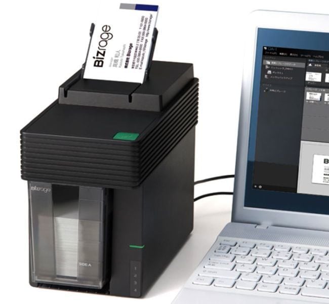 Bizureji 的尺寸是 105×216×195 mm,重约 1.4 kg。售价 41230 日元(约合人民币 2500 元)。每张名片的读取时间在 3 秒内,能同时扫描 15 张,机身上收纳箱可放 800 张名片。可与 USB 和有线 LAN 连接,将数据导入手机或电脑,外出办公时,不用携带冗重的纸质名片,所有联系信息也能一览无遗。