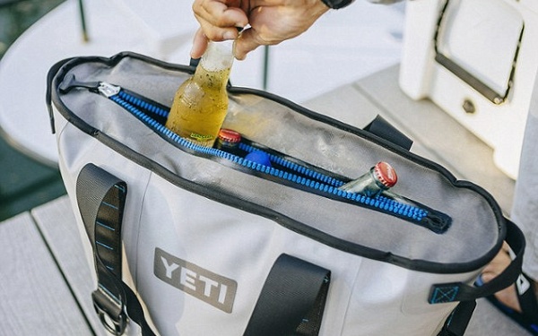 Yeti Hopper Cooler 实际上就是一个大的防水袋,内层配备了 1 英寸厚的隔热袋,容积接近 24 升,可以制冷好几天。因为够大、够结实、又防水,Yeti Hopper Cooler 能装下大量的散冰块和饮料,这也就是其制冷的原理。此外,包包的拉链也是密封防水的,装上冰块和饮料后,即使随便乱放,也完全不用担心冰块融化或者漏水。
