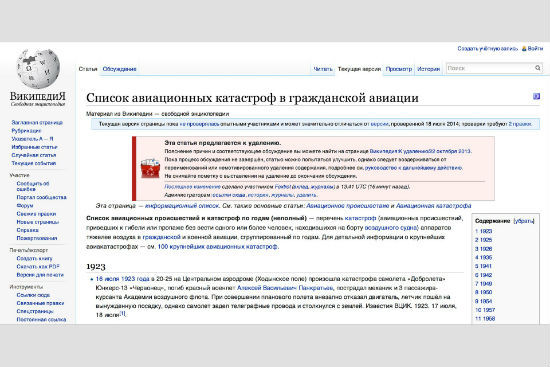 “Wikipedia article list of aircraft accidents in civil aviation has been edited by RTR[another name for VGTRK]”(RTR 修改了维基百科的“民航事故列表”的内容)