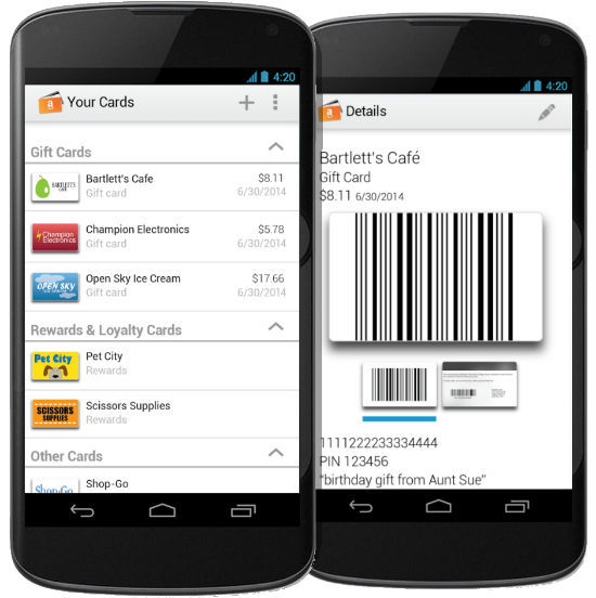 不管怎样,根据亚马逊和美国超过 70 家零售商达成的协议,消费者可以通过扫描,将这些商家的礼品卡、积分卡、会员卡的信息储存在亚马逊钱包里。然后这些实体卡的信息就会保存在亚马逊的云平台中,在结算的时候,消费者可以直接用手机使用这些卡片。