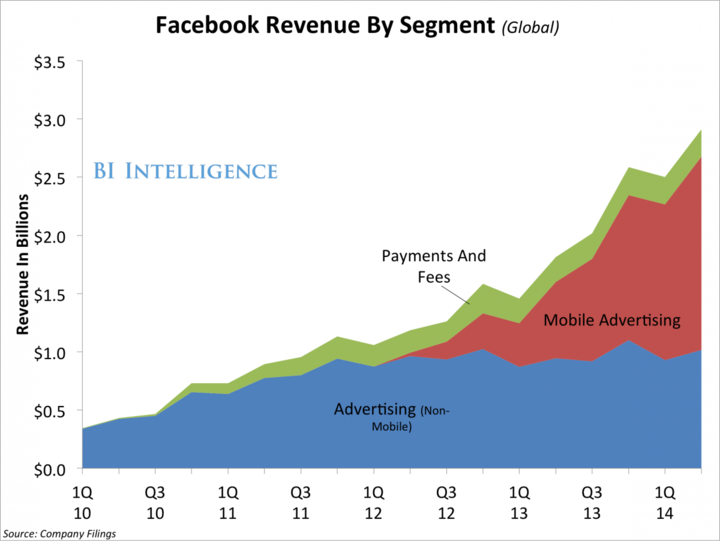 移动广告业务收入占了 Facebook 广告收入的 62%,其他收入则来自非移动端广告与相关手续费。