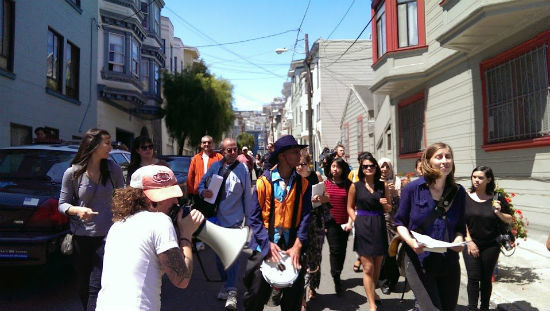 周二,在旧金山的 Mason 地区的人们就走上街头进行抗议,因为尽管 Airbnb 的业务尚未进入该地区,但已经有不少租客收到了来自房主的“逐客令”——贴在门口要求租客立即搬出的便利贴,而这些租客认为自己的权益收到了极大的伤害,他们要求当地政府取缔掉这些非法短期出租的”黑屋”。