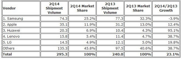 IDC:全球智能手机 Q2 出货量达 2.953 亿台,华为表现突出
