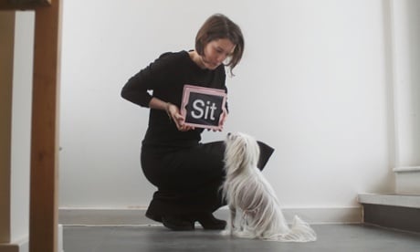 没错,狗狗训练师 Anna Jane Grossman 目前正在教狗狗玩平板。Anna 使用一个叫做 Big Words 的 App,可在平板上打出超大字体的单词,例如打出大字体 sit ,让狗狗学会辨识单词的含义,以后就能通过书面文字发出指令,让狗狗掌握指令动作。Anna 会将牛油花生等食物作为诱饵放在平板的屏幕上,教导它们触摸屏幕。