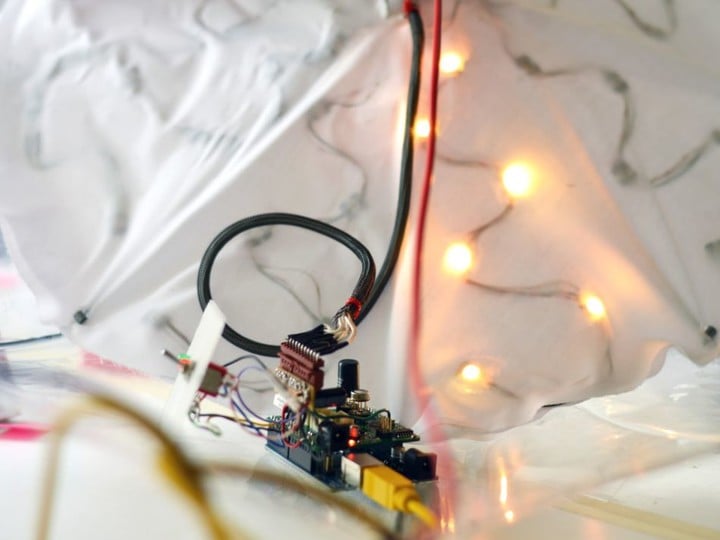 通过实时的数据传输,空气质量会在雨伞表面的 LED 灯一闪一闪呈现。当然啦,这闪完之后数据并不会随之消失,而是会根据时间和地点的分类上传到云数据库中。研发团队希望能让更多人使用这把传感伞,在地图上全方位展现出该城市的空气质量状况。