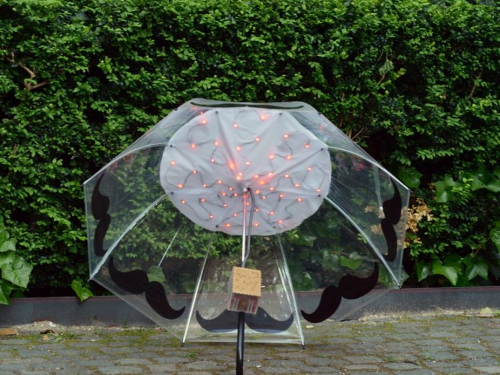 一把伞除了遮阳挡雨之外,还能做什么呢?《哈利波特》中 Hagrid 的粉红色雨伞可以藏魔杖,《大闹广昌隆》中的油纸伞可以住着幽魂……嗯,还是暂且先忘记这些恐怖片和科幻片,我们现在介绍一款非常实用,能检测空气质量的发光伞。