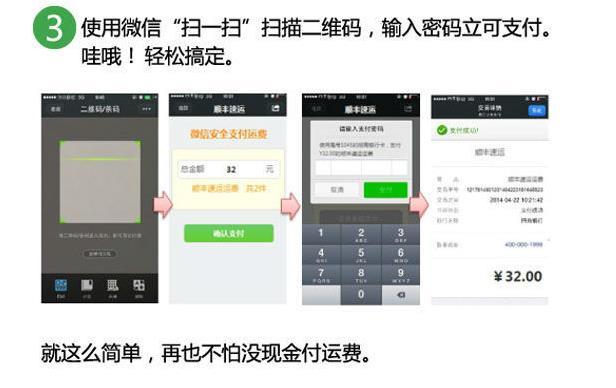 今天,微信官方网发布消息,自 7 月 25 日起,深圳作为试点城市,率先尝试使用微信支付顺丰快递运费功能。快递小哥用随身携带的小黑神器生成支付二维码,只要你拿起手机微信扫一扫,即可支付任意金额的运费,省去零钱找续的时间。