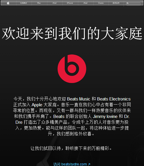 近日,苹果公司花费 30 亿美元成功收购 Beats 电子和 Beats 音乐消息占据了各大头版头条,今天苹果终于在中国苹果官网上成功上线专属 Beats 的版块,进入链接可以看到苹果的一段致辞,再点击下面的网站链接我们就可以进入 Beats 官网,购买其中包含了头戴式耳机、耳塞、扬声器、音响等 Beats 旗下的所有硬件产品。