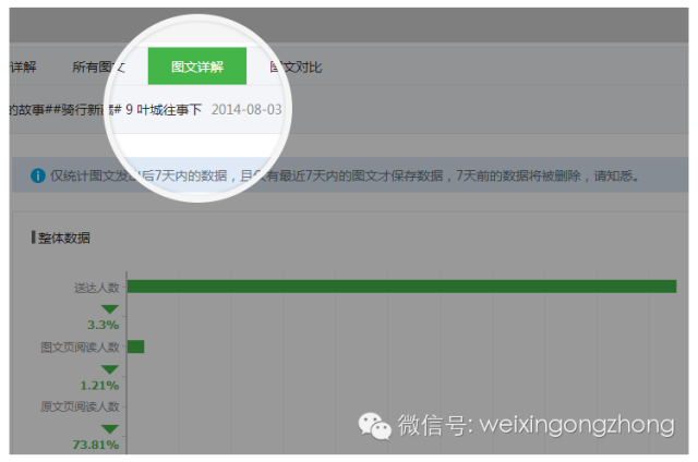 3.图文群发页增加图文详解功能,可查看图文消息的详细属性,和读者的属性数据
