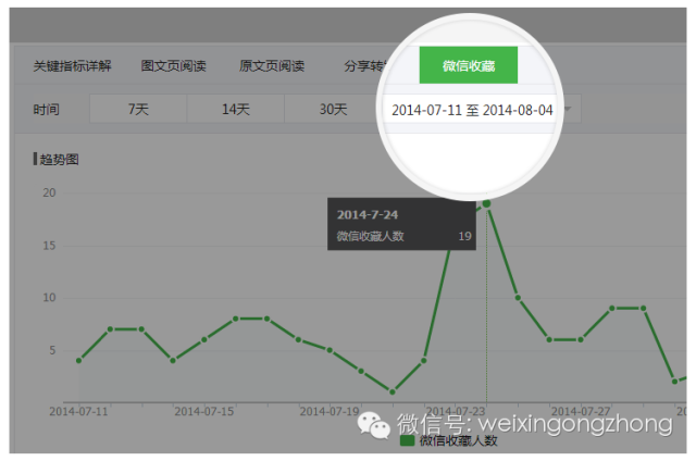 5.图文群发页和图文统计页增加微信收藏统计,可查看每篇图文的收藏次数,或所有图文的每日总收藏次数