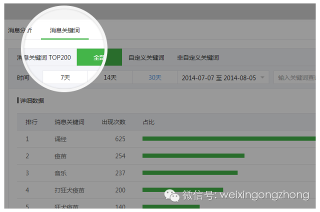 6.增加消息关键词页,可查看用户发给公众号的消息中有哪些关键词,便于公众号了解用户需求