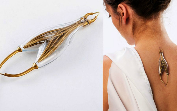Energy Addicts 设计成一款奢华的珠宝外形。这是一款植入式的穿戴设备。植入式?嗯,没错,Energy Addicts 针状的尖端插进皮肤表层,收集血液流动时所产生的能量。在试验中,Energy Addicts 能收集足够的能量点亮 LED 灯,甚至是为移动设备充电。