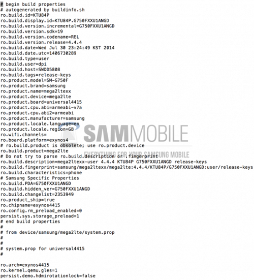 Galaxy Mega2 在三星内部的代号是 Vasta,运营商型号为 SM-G750F,此次消息是根据官方固件和 build.prop 文件反向编译得出的,消息所针对的机型是欧洲版 Galaxy Mega2。