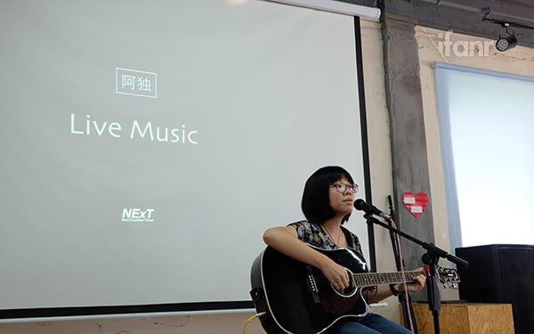 最后,NExT 还邀请到了广州本土歌手 goson 和阿独为大家献唱,科技与人文的气息,在这里交融。