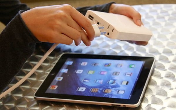 ChargeAll 的方正设计与市面上绝大部分移动电源一致,12000 mAh 轻量版体积为 15.24×10.16×2.54 厘米。ChargeAll 内置 USB、microUSB 等常见手机充电接口,更粗暴的地方就在于它拥有支持大型电子设备的三孔复合式 AC 插口,电脑想充电,直接插插头就行。