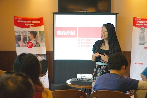 活动开始我们美女主持人以「科幻电影」为切入点引发了参与者的极高热情,在活动参与者简单的自我介绍之后,诺亦腾的 CTO 戴若犁上台开始对自己的品牌和产品进行介绍和解说,期间通过图像、视频以及 DEMO 的代入使得解说变得生动有趣,也让大家都清楚的认识到了诺亦腾以及它现在以及未来在影视、医疗和游戏等方面的运用及革命性突破。