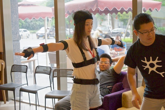 生动有趣的解说结束时候,诺亦腾团队拿出了自己的产品「腾挪」作为现场演示,让大家感受到了科技带来的「惊喜」。