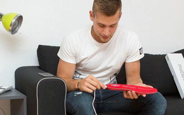Digitsole,一款主打保暖功能的智能鞋垫。从外观上看,它与普通鞋垫无异,但是其实它内藏玄机。在 Digitsole 的底部有一个 USB 接口和一个开关,内部还设有加热元件、电池、传感器等。