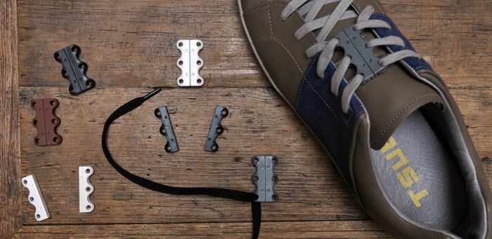 Zbuits 磁力鞋带原理非常简单,就是把两边的鞋带分别穿进两块超强力磁铁上。用的时候把鞋子穿好,让磁铁互相吸引,鞋带就系好了。另外,磁块的磁力很强,测试中磁块可以吊起两块铁饼和一块砖头。所以在剧烈运动如打篮球,鞋带也不会脱落。