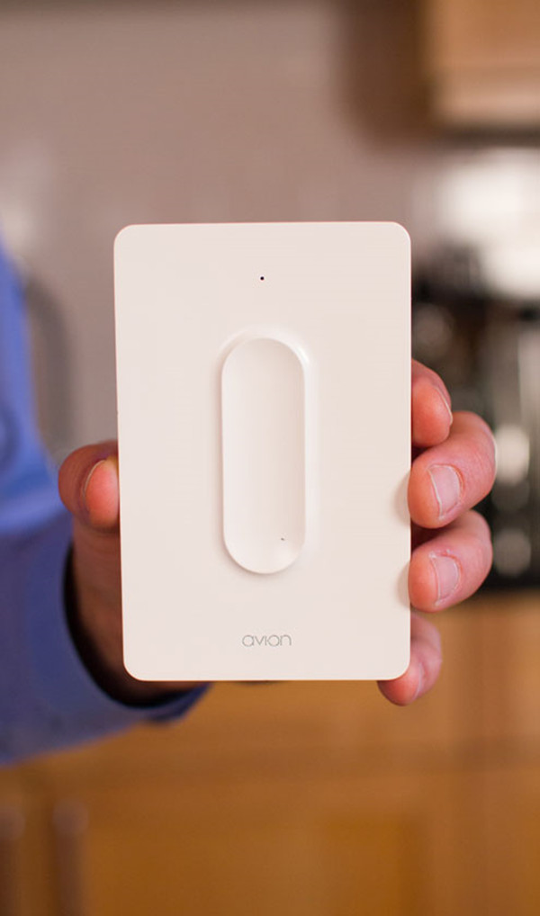 Avi-on 智能开关是无线的,更方便的是,它能直接贴在墙上。开关通过蓝牙发射指令给接收器,接收器连接在电器和插座之间,通过这种方式控制灯的开关。不但如此,如果电器是灯具,还能通过滑动开关调节灯的亮度。接收器有室内和室外两种,原理都是一样的。