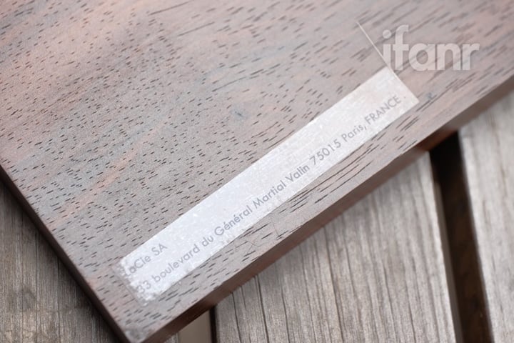 出于美观考量,LaCie Mirror 的产品信息选择贴在木制底座背部