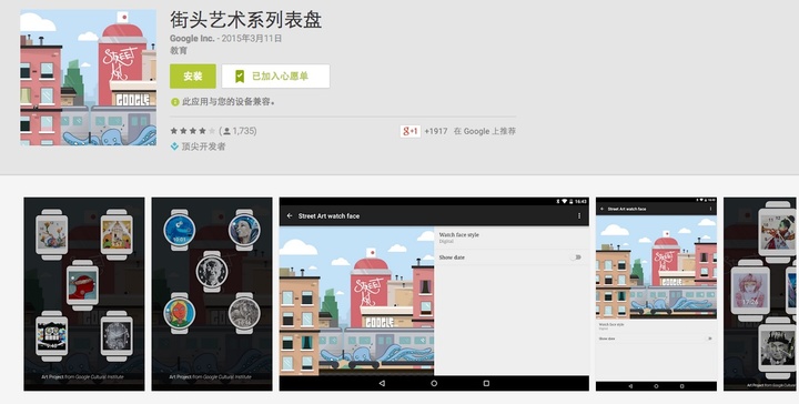 其中 Street Art watch 里面街头涂鸦风格的表盘来自 Google 艺术计划,由 Aitch、Andre Fernandes Trindade 这样的街头艺术家打造。