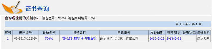 传言了大半年的小锤子手机终于有了确凿的证据证明它的存在了。在工信部的网站上,备案型号为 YQ601 的手机已经可以查询,而申请单位则是锤子科技 (北京) 有限公司,加上之前的一些消息,我们可以基本可以断定,这款 YQ601 就是锤子将要发布的中低端机。