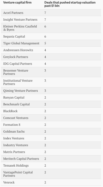 2014 年的科技行业,哪些风投投出了更多的“独角兽”?